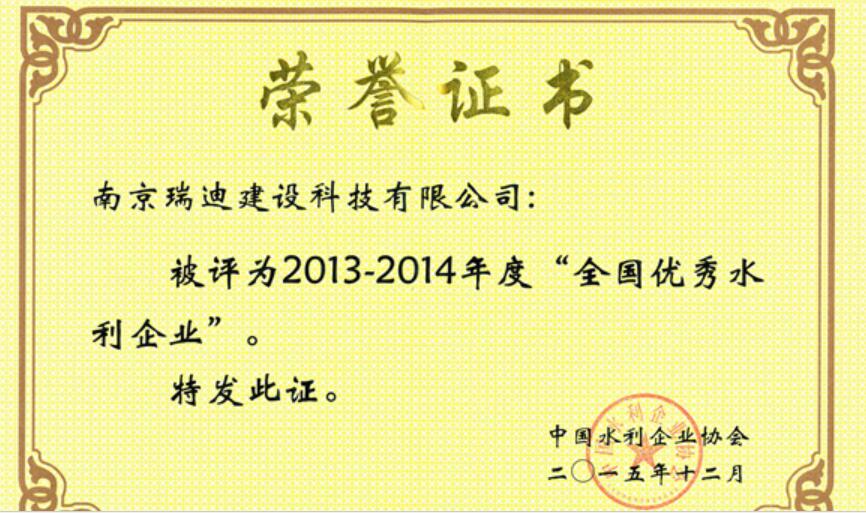 瑞迪科技总公司荣获“全国优秀水利企业”