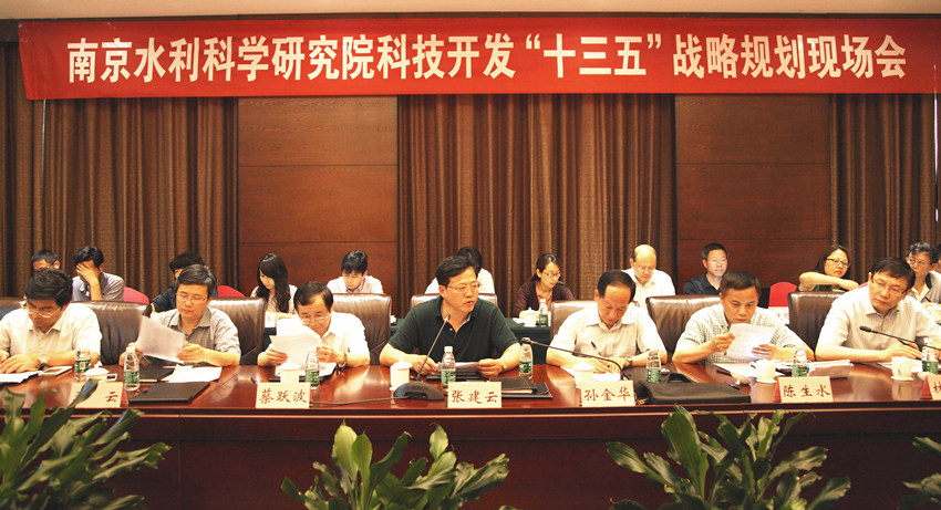 作为南京水利科学研究院“十三五”规划编制工作重要组成部分,根据院工作部署,院科技开发“十三五”战略规划现场会于2015年7月14日在安徽省当涂县召开。会议由南京水科院院长张建云主持。副院长孙金华、蔡跃波、陈生水、李云、党委副书记林晓斌、副院长戴济群,院总工程师窦希萍,院总会计师薛亚云出席会议,共商南京水科院科技企业改革发展大计。鄢俊总经理重点从内外形势分析、战略构想提出、战略目标设定以及面临问题对策四个方面,亲自向与会领导汇报了安徽瑞迪公司五年战略规划。