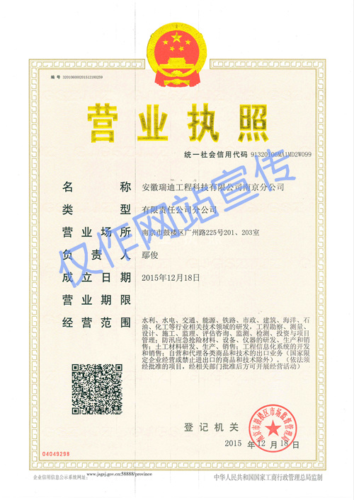 新年伊始,公司顺利拿到南京分公司营业执照。 这将为更多的优秀人才加盟安徽瑞迪,为公司业务能得到更好地拓展而打下了坚实的基础。2016年是十三五规划的开局之年,公司上下将齐心协力,努力打造院科技成果转化平台,早日实现规划目标。