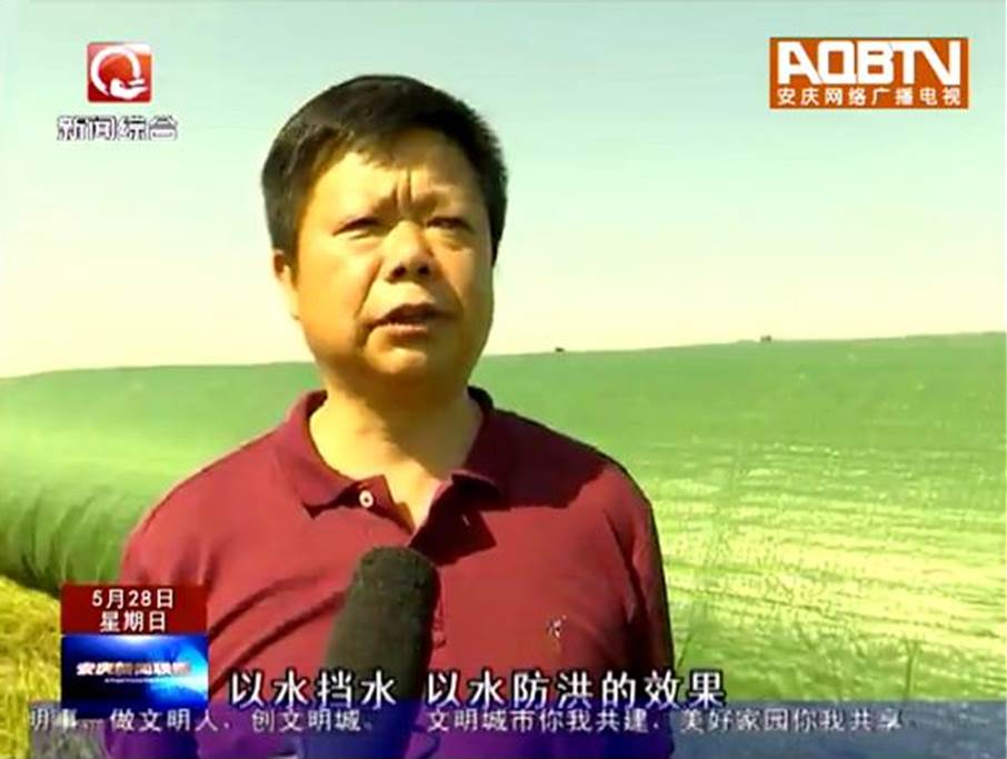 安庆市水利局综合减灾科科长朱承忠同期声:在我们这次演练当中,已经展示了“超长防汛管袋”的以水挡水,以水防洪的效果,具有建筑时间短,构筑子堤快,防汛效果好的作用。