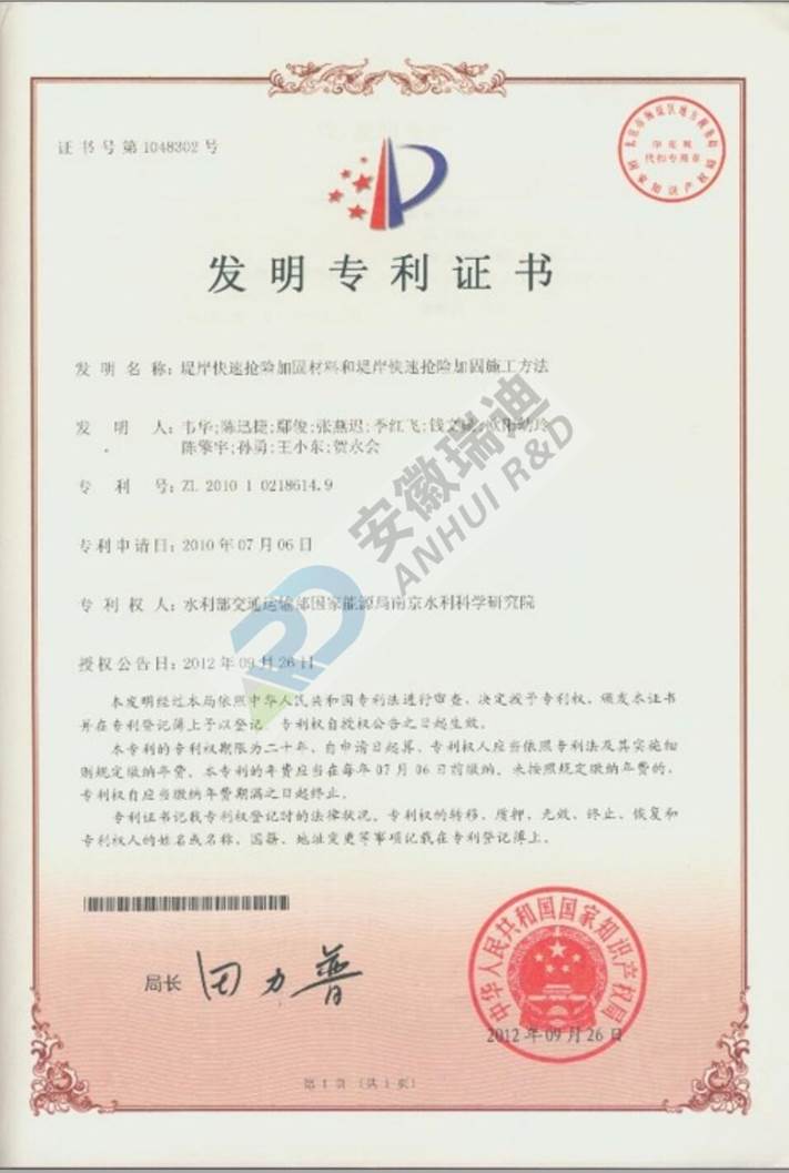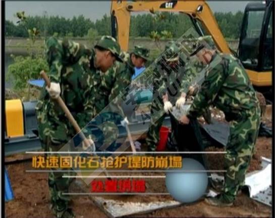 快速固化石可替代传统抛石,其主要特点为能够在短时间内就近迅速将土石料固化成石,且可根据抢险需要形成大小不同和形状各异的块体,而块体在水中长时间不会散体。与传统抛石相比,具有取料方便、抢险快速、绿色环保,尤其是现场能够制成满足现场抢险需要的不同大小和形状的块体,有利于快速稳定险情。