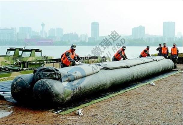 充水式橡胶子堤是由充水胶囊和防护垫片构成,三个胶囊固定成一个稳定三角形,主要用于城市防洪抢险、堤坝的临时加高、阻滞洪水漫溢等。其特点是重量轻、耐压强度高、气密性能优良,是一种轻便、灵活、高效、可重复使用的防汛抢险工具。