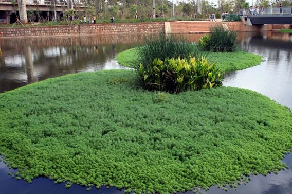 生态浮岛技术能够将水面美化、水体净化完美结合,针对富营养化的水质,利用生态工学原理,降解水中的COD、氮、磷的含量的生态浮岛。使水体透明度大幅度提高,同时水质指标也得到有效的改善,对藻类有很好的抑制效果。