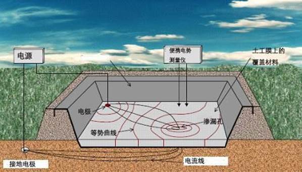 土工膜渗漏探测方法电学渗漏破损探测法,是目前防渗土工膜渗漏破损探测最可靠和有效的方法。电学渗漏破损探测法参考的技术标准“土工膜电学渗漏破损探测方法选择与技术标准” (ASTMD 6747)规定了具体工程可以选择检测仪器、方法和程序。